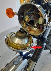 すぐには動かない。機械モノを長年放置すると不具合が生じる。例えば、現状フロントディスクブレーキのパッドが固着して前輪が回らない。キャブレターはどうなっているんだろう。いろんなところのメンテナンスが必要。でも、自分でするにせよ、外注するにせよ、これは何とかなる。一番の心配事はこれではない。